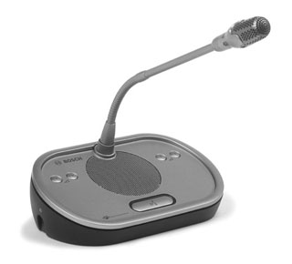 基本討論裝置可以使與會人員發(fā)言、登記發(fā)言請求以及聽取他人發(fā)言。 它提供了用于連接可插拔話筒(DCN-MICS 和 DCN-MICL,需要單獨(dú)訂購)的插座。