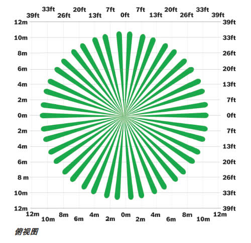 英尺)全方位探測(cè)范圍。 安裝高度為 2.4 米(8 英尺)時(shí),提供 12 米(40 英尺)全方位探測(cè)范圍。
